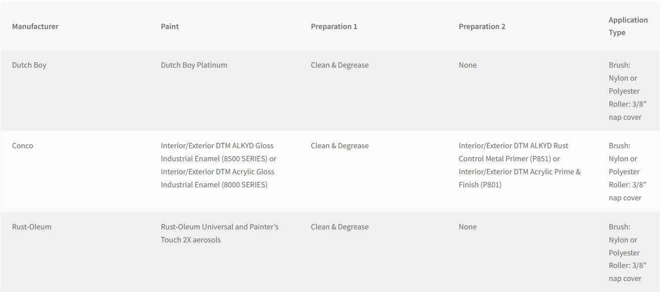 To paint Aspect metal tiles, the recommended paint and preparation steps are below. For proper adhesion, be sure to complete both preparation steps: