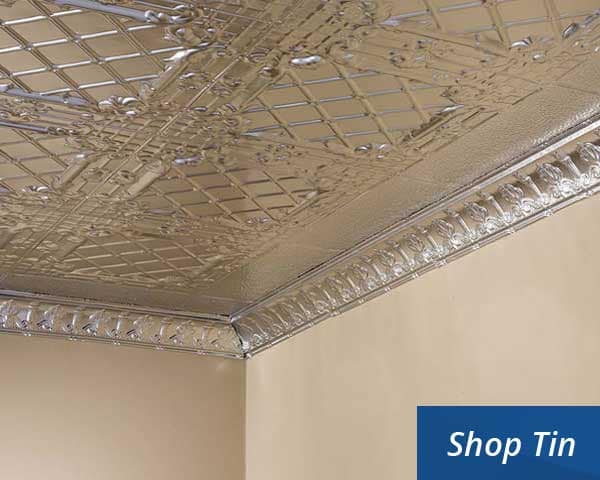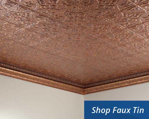 Faux tin ceiling panels are offered in numerous styles and colors and are easy to cut, handle and install.