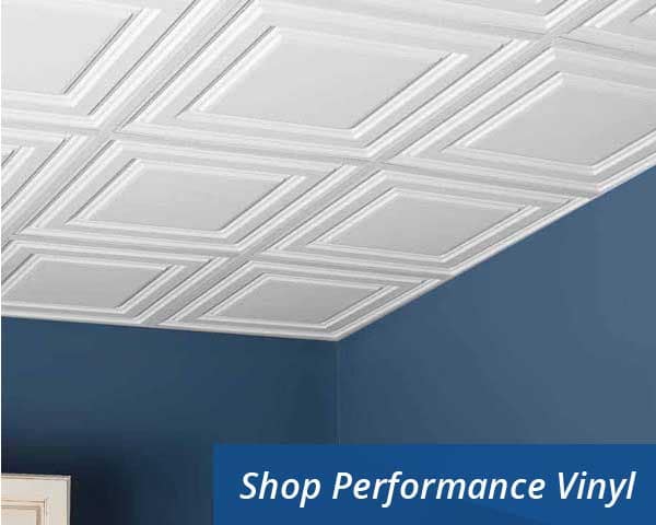 Performance vinyl ceiling panels are guaranteed not to water-stain, bow, swell or rot. They are ideal for use in moist and humid areas.