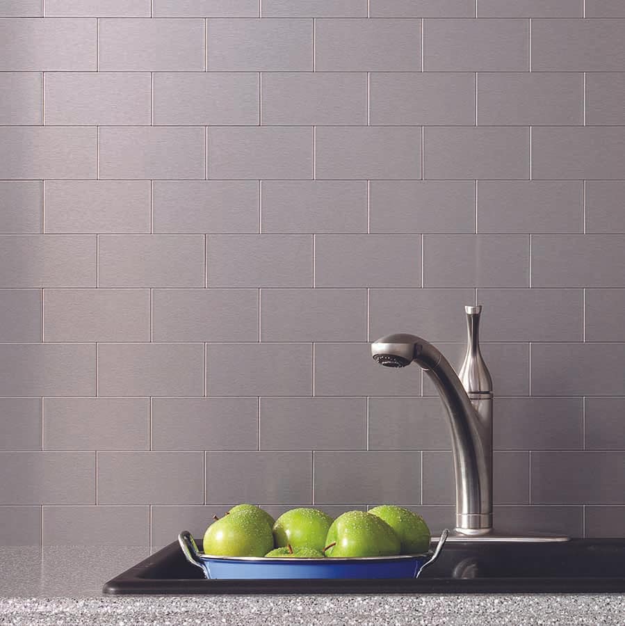 Aspect Metal is a 3×6 decorative metal tile that provides the look of custom metal backsplash.