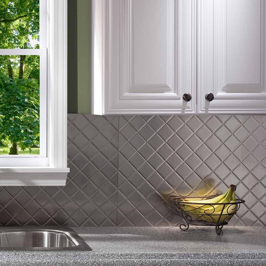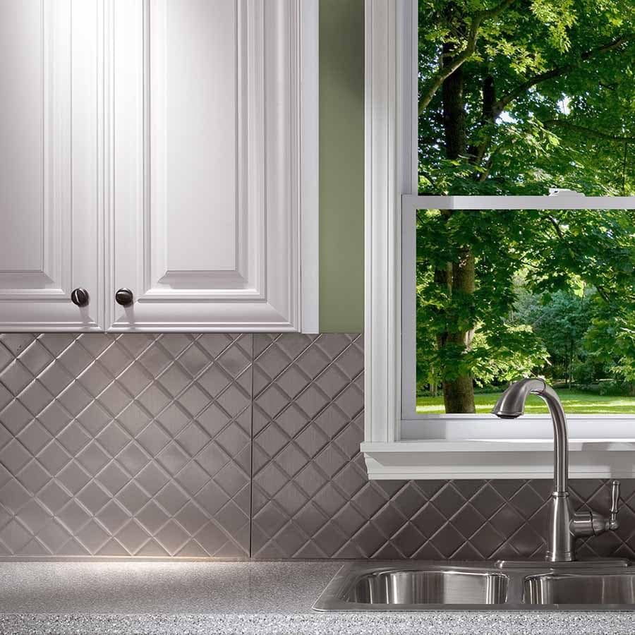 Fasade is an embossed vinyl panel that looks like tin and comes in various sizes and applications.