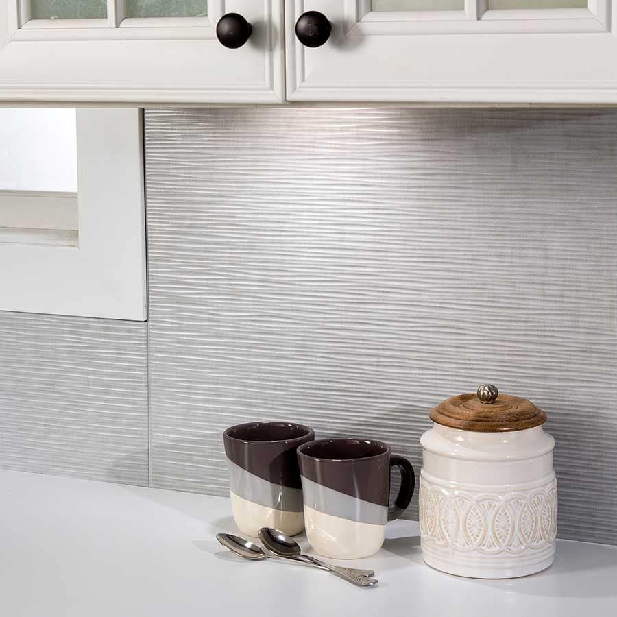 Fasade is an embossed vinyl panel that looks like tin and comes in various sizes and applications.