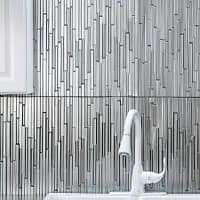Fasade is an embossed vinyl panel that looks like tin and comes in various sizes and applications.