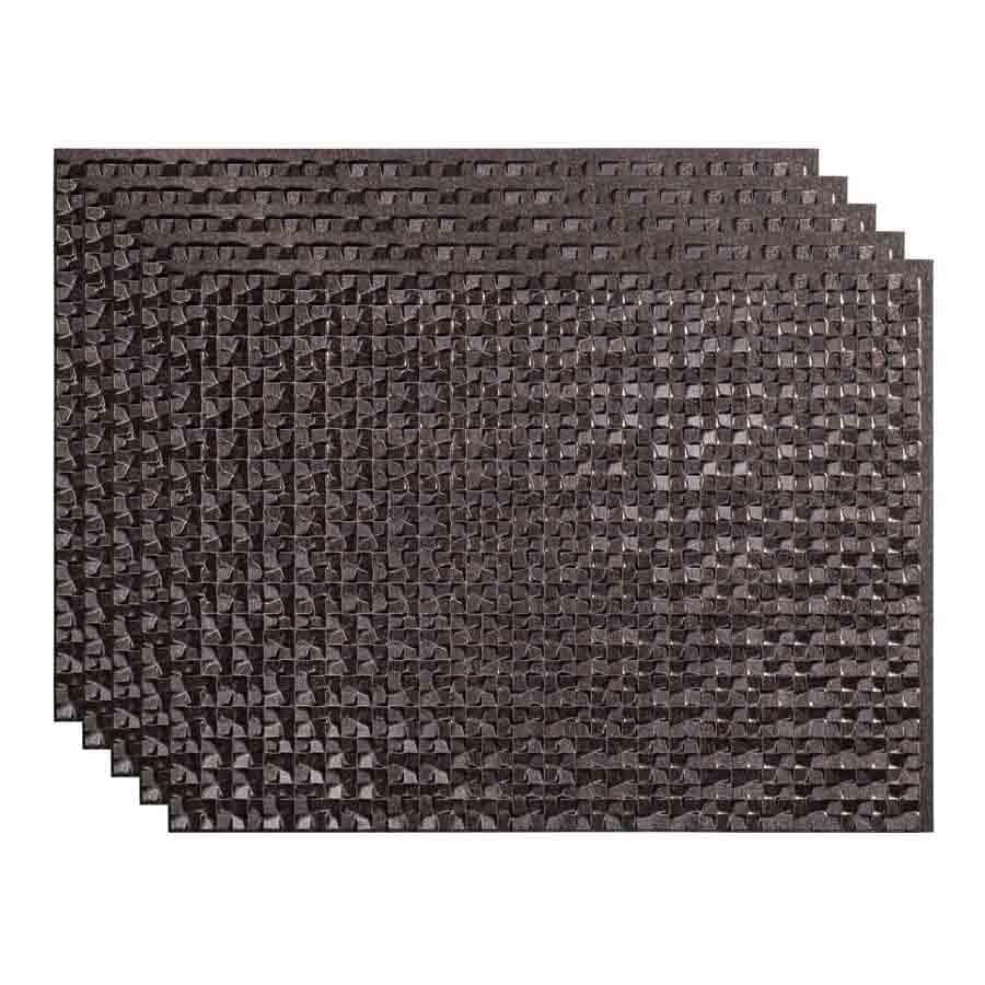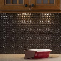 Fasade is an embossed vinyl panel that looks like tin and comes in various sizes and applications.