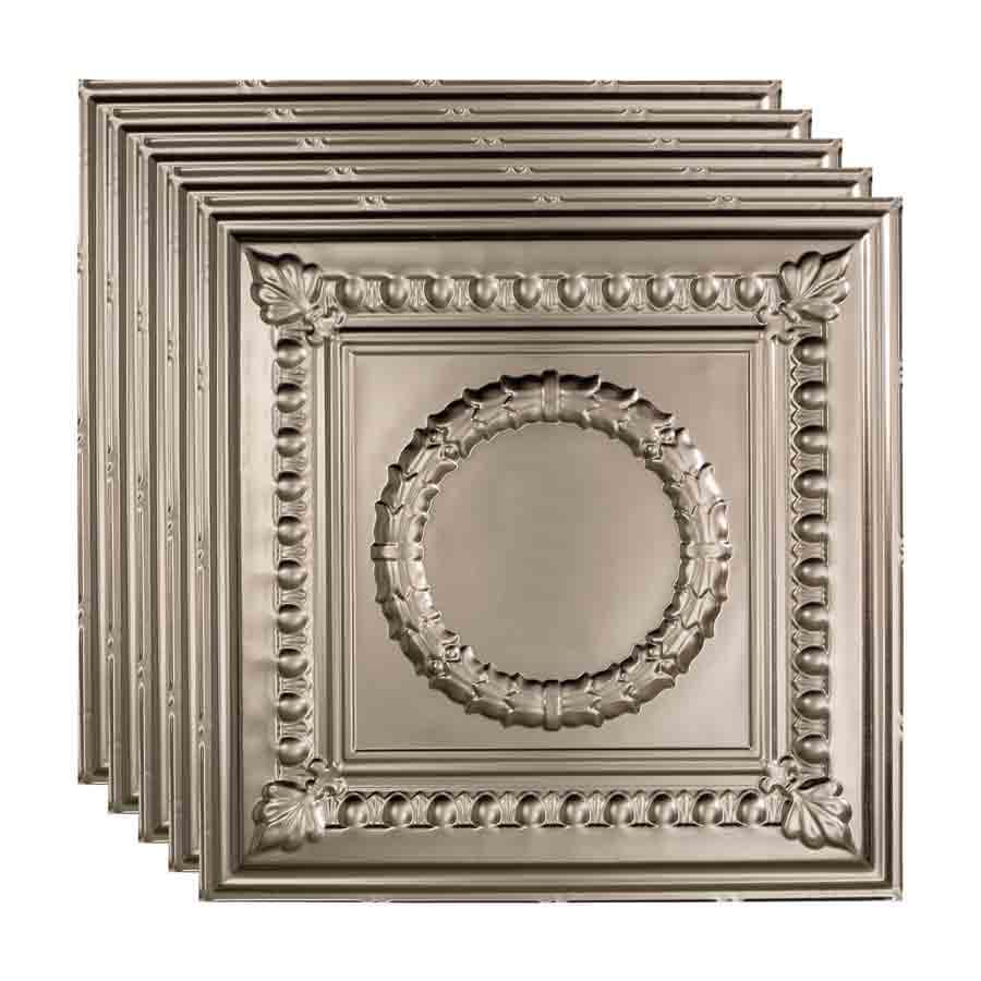 Fasade is an embossed vinyl panel that looks like tin and comes in various sizes and applications.