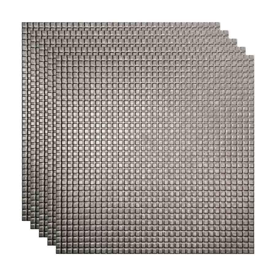 Fasade is an embossed vinyl panel that looks like tin and comes in various sizes and applications.
