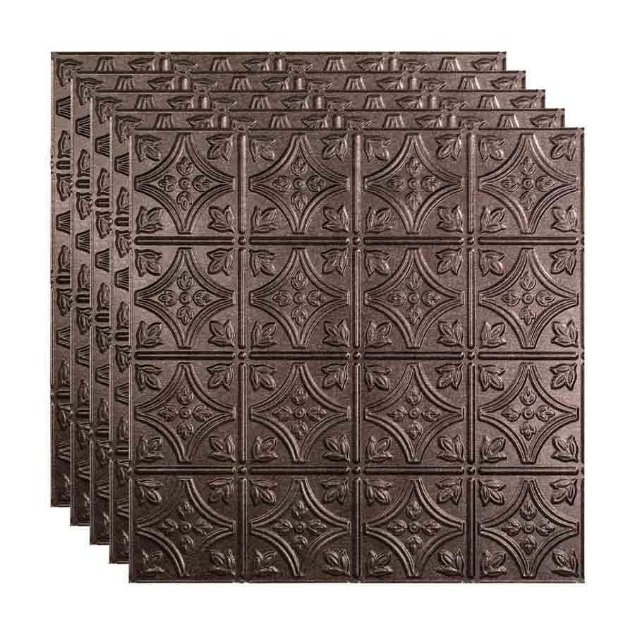 Fasade is an embossed vinyl panel that looks like tin and comes in various sizes and applications.