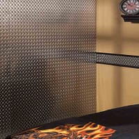 Fasade is an embossed vinyl panel that looks like tin and comes in various sizes and applications.