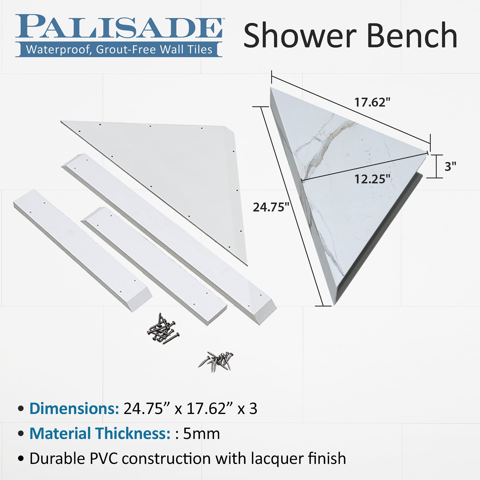 The Palisade floating bench perfectly matches our Palisade finishes to add functionality and style to any Palisade shower installation. Made of durable PVC with a lacquer finish for lasting strength and easy maintenance, the bench kit installs quickly and easily over Palisade tiles.