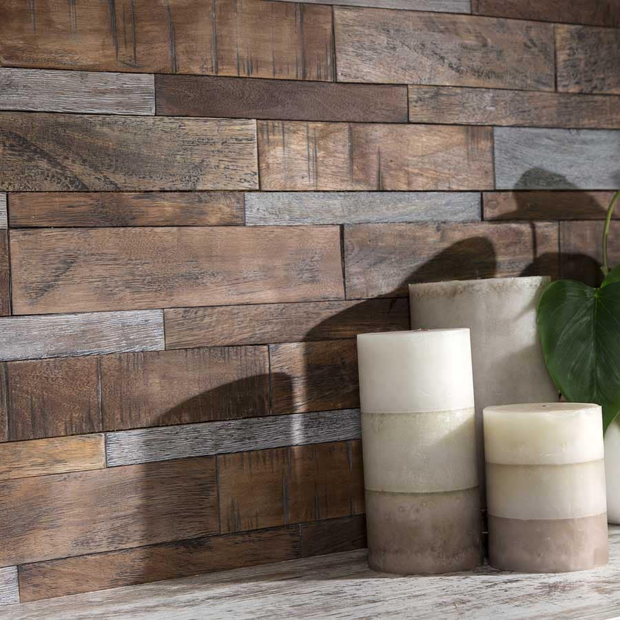 Infuse any space with the warm look and feel of wood. Rustic Grove 3D Wood Wall Panels are made of real pine pieces, which are combined for three-dimensional mosaic-style that adds depth and character to rooms.