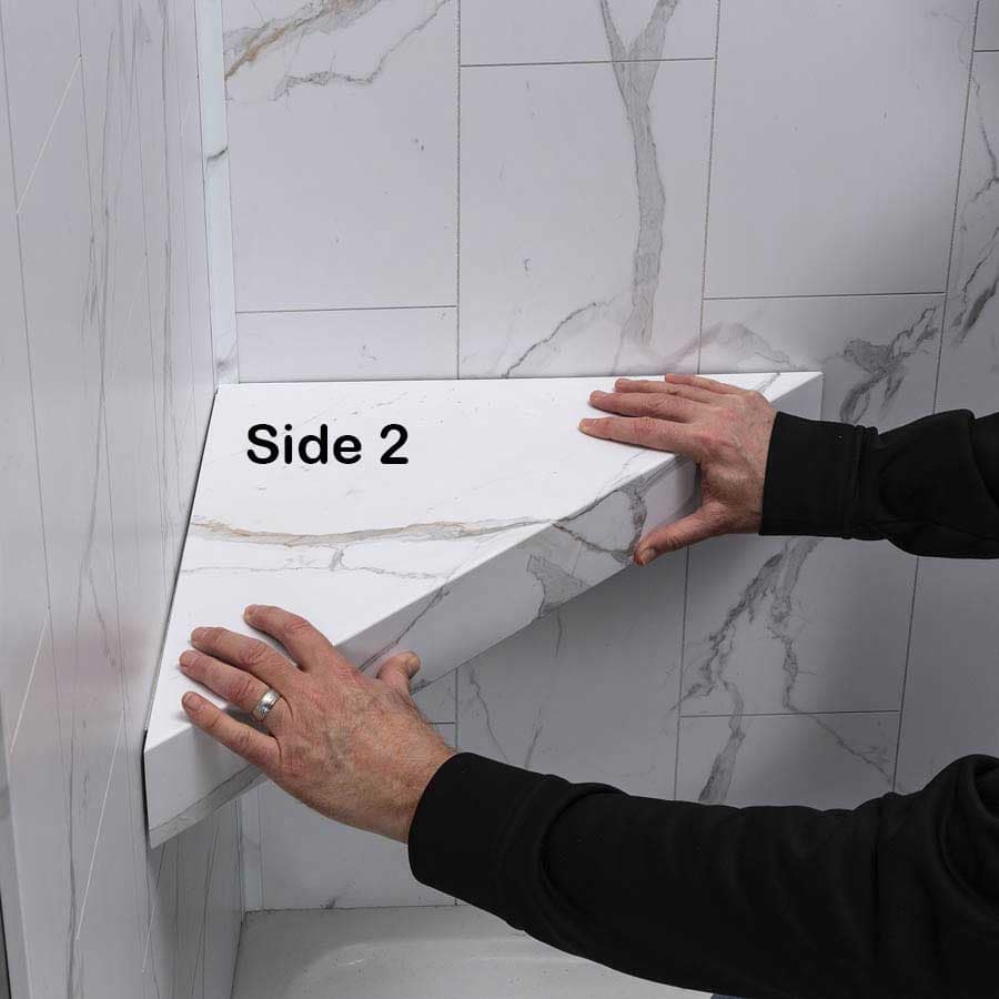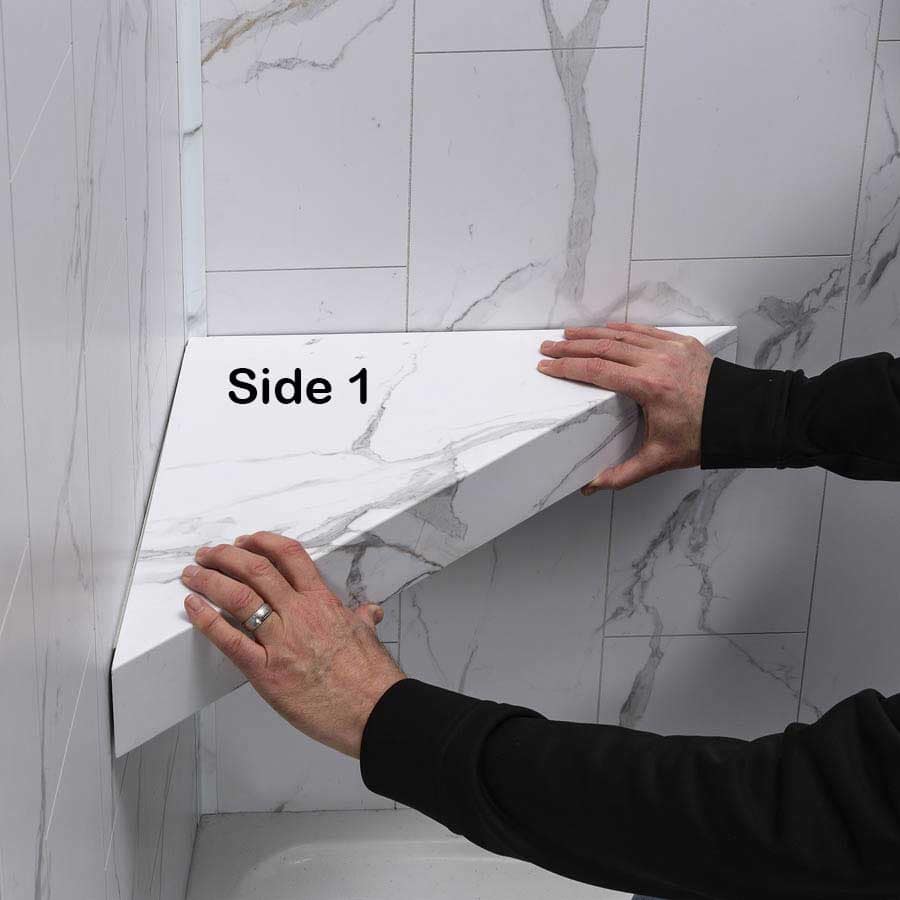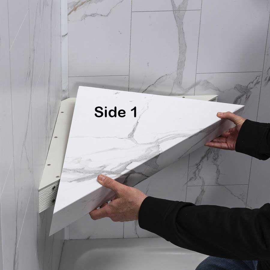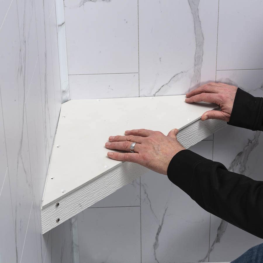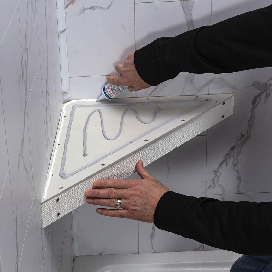 Install the first screw closest to the corner of the shower. Pre-drilled holes are provided for ease.