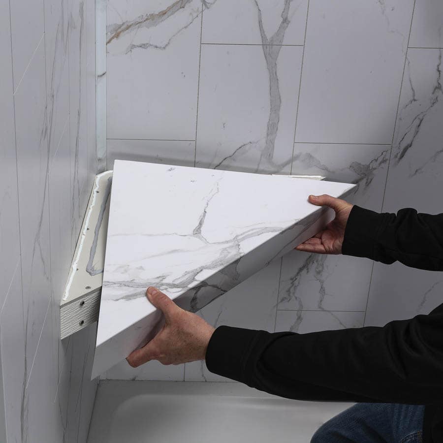 After locating where you want to place the bench, put adhesive onto bracket. Suggested height is 20″ from floor.