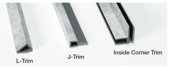 J-Trim are used to finish the terminal end of tiles when not adjoined to anything. To install, don’t dispense adhesive a few inches from the tile’s edge where you intend to use the J-Trim. This will allow the trim to slide in place. Dispense a bead of sealant into the receiving channel of the trim and then press the trim into place.