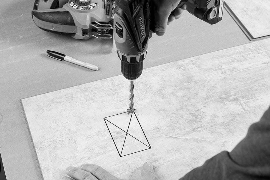Do not attach accessories like coat hooks, light fittings, mirrors, etc. directly to the tiles. Drill holes through the tiles and use suitable anchors to attach the accessories securely into the framing behind. Seal per sealant instructions.