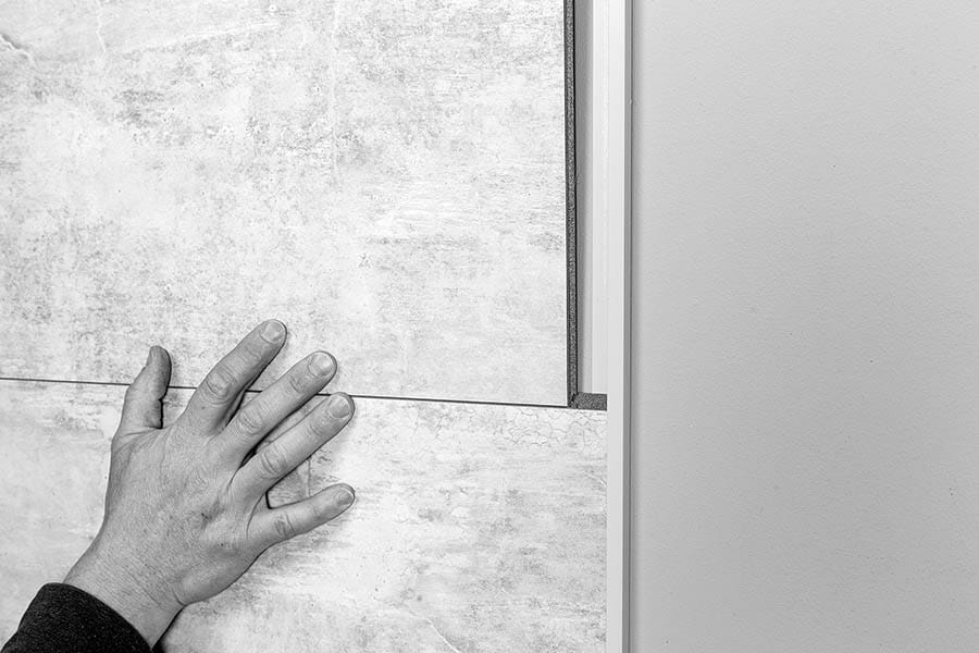 L-Trim are used to cover existing exposed tiles to provide a finished look. Install by dispensing a thin bead of sealant on the Palisade side and a thin bead of adhesive on the substrate side. Press trim into place. If trim will not stay in-place, use some masking or painter’s tape to hold until adhesive sets.