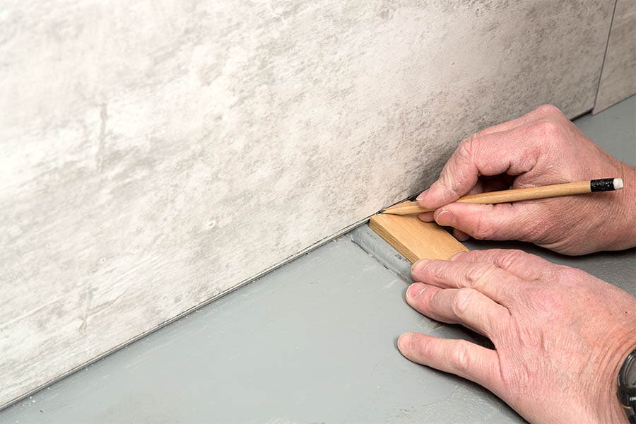 It is recommended that you perform a “dry layout” prior to applying any adhesive. Measure walls, check for level and square. Depending on dimensions and room construction, you may need to trim some panels accordingly. Depending on your project, when fitting for dry layout, panels can be centered at a focal point, such as behind a sink or the center of a room. For the purpose of the layout only, build out from both sides of the focal point, to ensure how the tiles fit into the space.