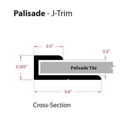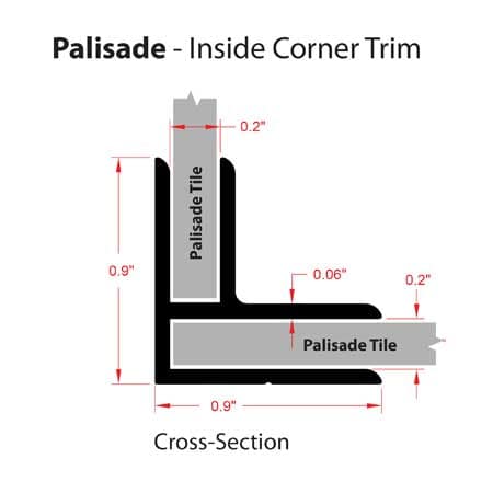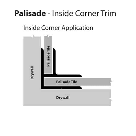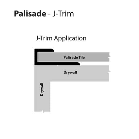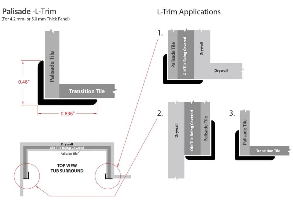 L-Trims are used to cover existing exposed tiles to provide a finished look (see drawing below). Install by dispensing a thin bead of sealant on the Palisade side and a thin bead of adhesive on the substrate side. Press trim into place. If trim will not stay in-place, use some masking or painter’s tape to hold until adhesive sets.
