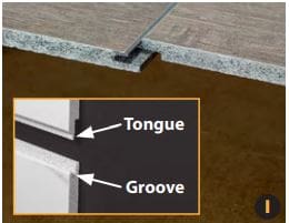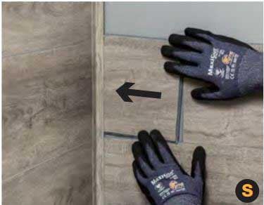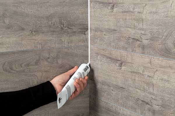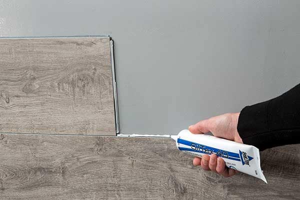 Installation in environments exposed to a direct flow of water (shower, mud room or garage) require a 1/8-inch bead of sealant to be used in all tongue and groove connections (image A).