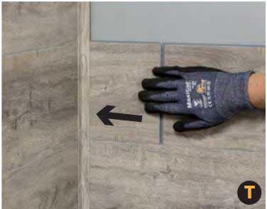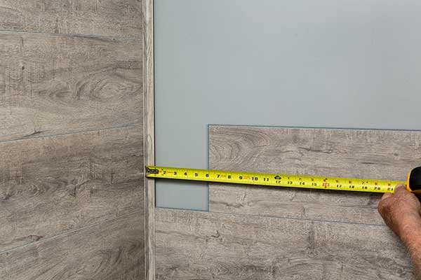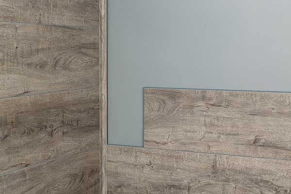 If you are using corner and/or L-trims for a Palisade shower kit installation, the following information will show how to install the last, short plank at the end of a row. Read and follow if your project looks like this.