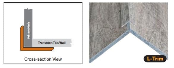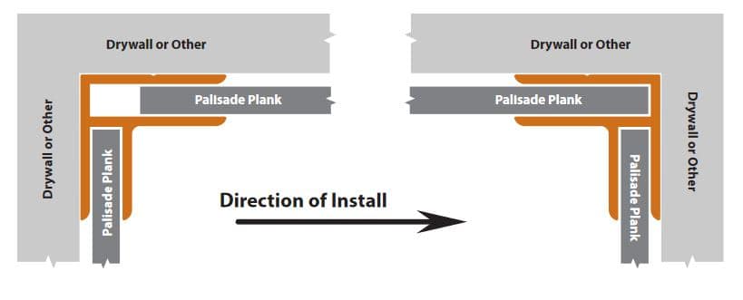 L-Trim are used to cover existing exposed planks to provide a finished look. Install by dispensing a thin bead of sealant on the Palisade side and a thin bead of adhesive on the substrate side. Press trim into place. If trim will not stay in-place, use some masking or painter’s tape to hold until adhesive sets.