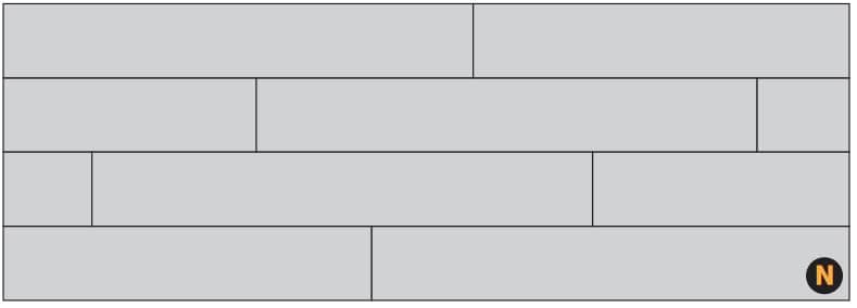 Determine what pattern you want to use before starting the second row MP(image N, O). Commonly-used options are running bond (vertical joints are staggered) and stack bond (vertical joints line up).